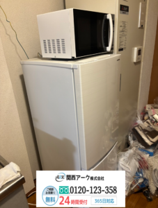 冷蔵庫や、電子レンジ・棚などの不用品全処分のご依頼を頂き、作業完了しました。